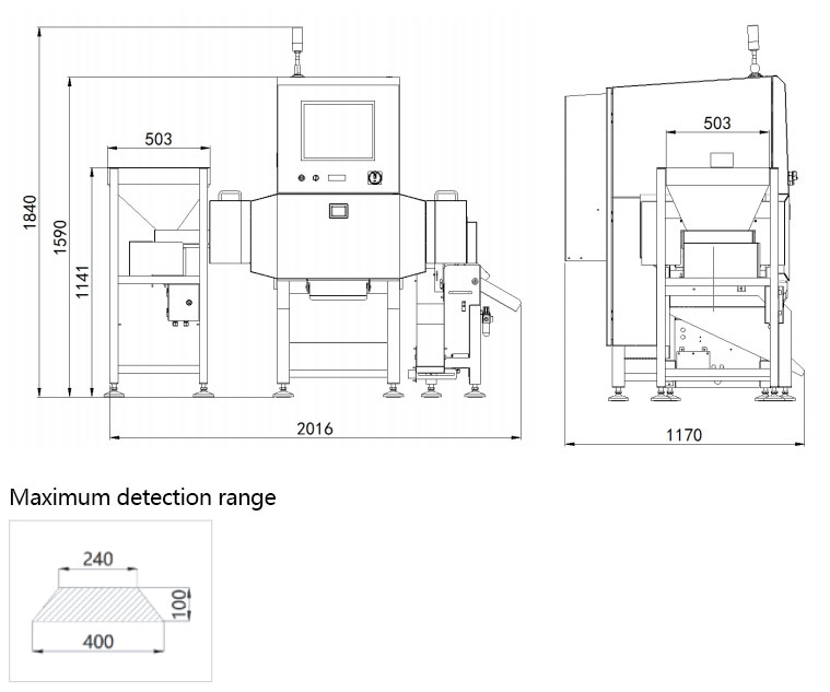 Remarks: The size of detectable foreign objects is related to the material composition, packaging material, thickness and other parameters in the product. Please refer to the actual product test results.