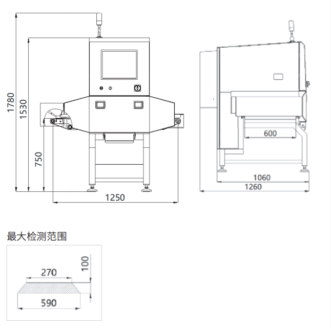 8.X射線泄露滿足美國FDA標(biāo)準(zhǔn),設(shè)備外部小于1uSv/h。